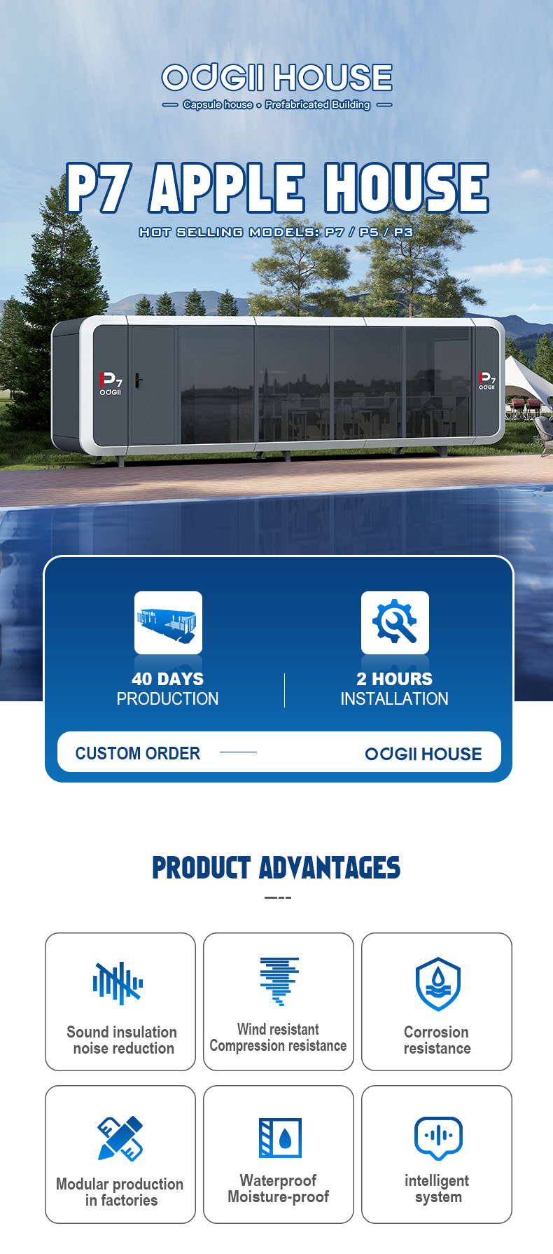 30 days of production in the factory, and fully integrated houses are ready to use within 2 hours of installation, with no need for on-site construction or renovation.