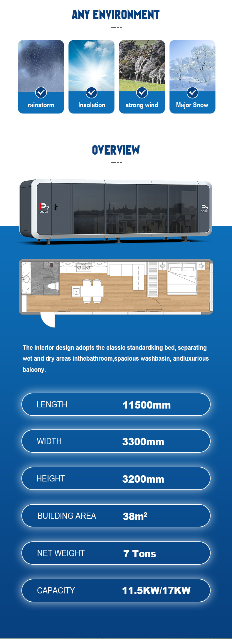 | Dimensions | (L) 11500x (W) 3300x (H) 3200mm |